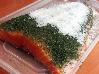 - 1 lomo de salmón sin la espina central (en navidad suelen vender lomos enteros para marinarlo)