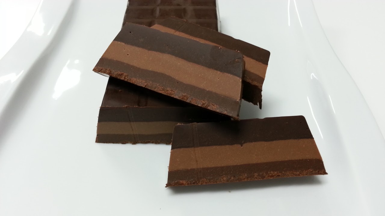 Añadimos los otros 40 gr. de manteca restantes y programamos 4 minutos, temperatura 50º y velocidad 2. Comprobamos que la manteca esté totalmente deshecha y que el chocolate no se haya quedado en las paredes, si no es así hacemos como hemos comentado en la primera capa de chocolate blanco. Seguir como en los pasos anteriores pero ya no hace falta ponerlo en el congelador. Dejar solidificar.