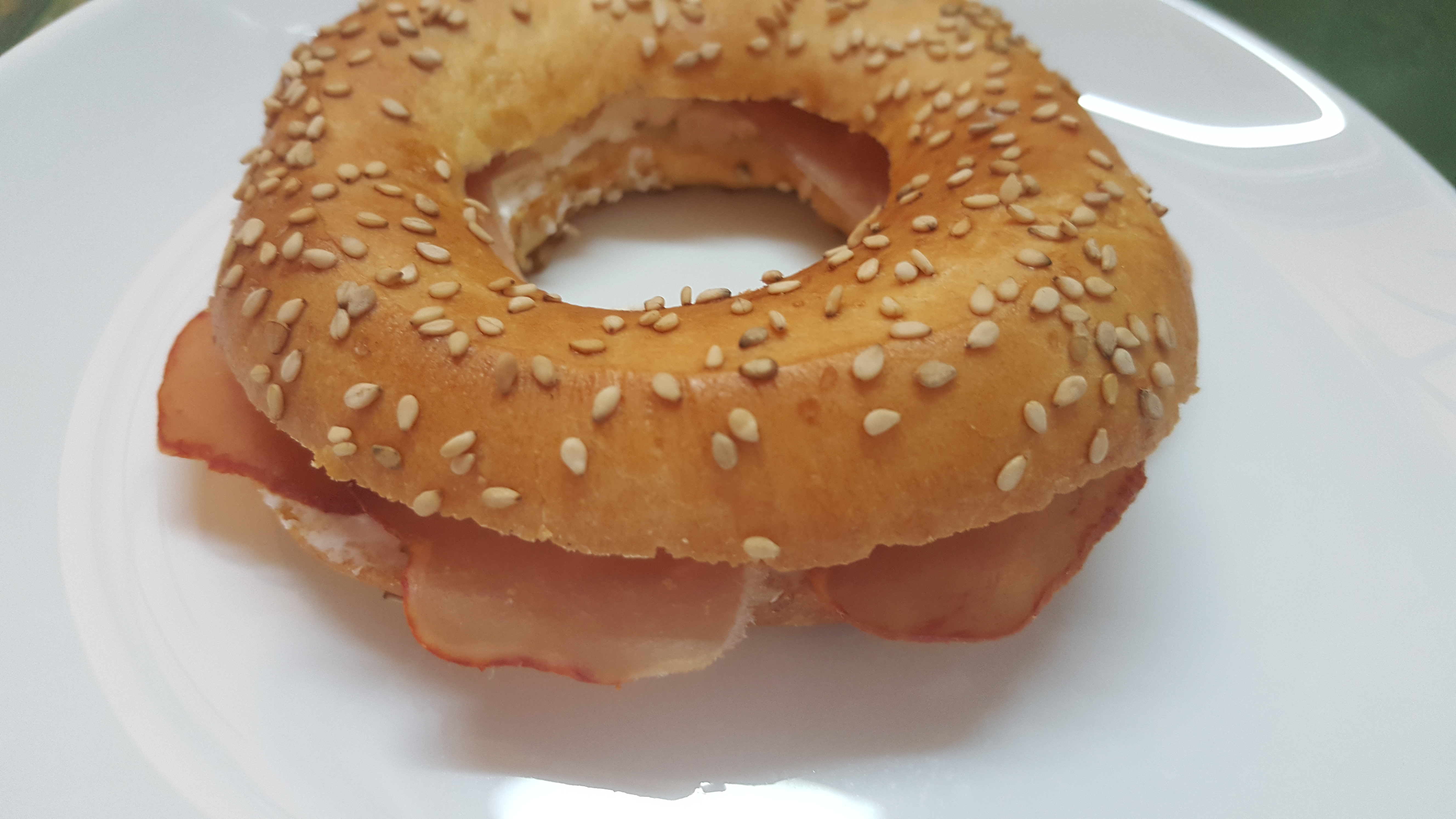 Retiramos la bandeja con los bagels y los cubrimos con una paño hasta que se enfríen. Sugerencia: podemos rellenarlos de jamón y queso, lechuga, canónigos, tomates cherry, salmón, mayonesa, queso cremoso, mermeladas, etc.
