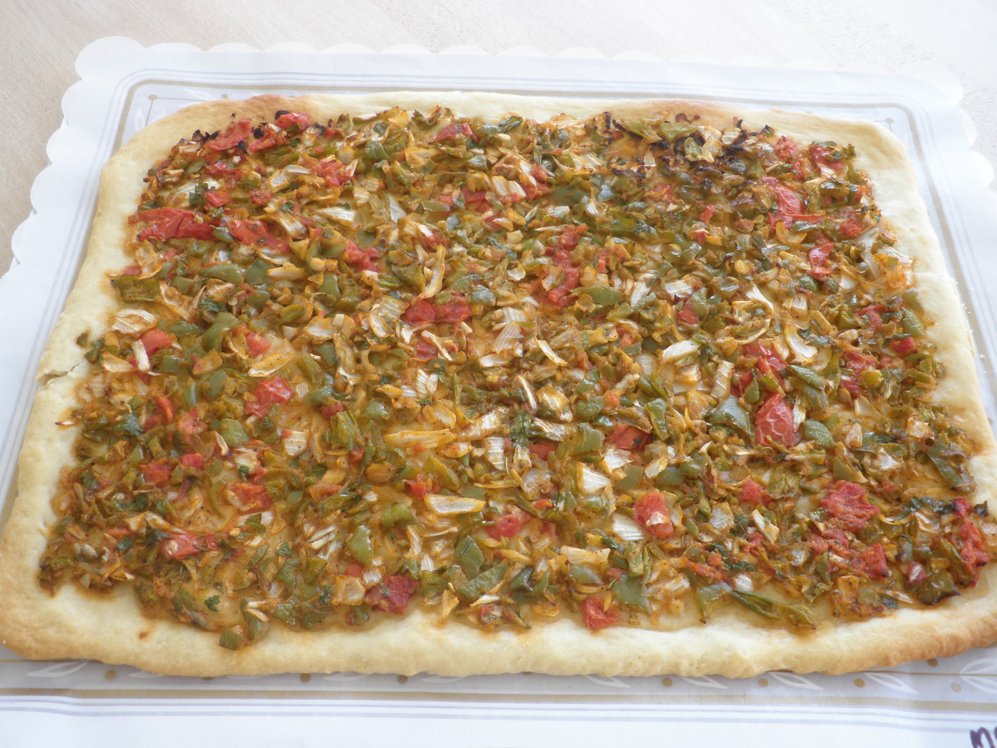 Dejar fermentar hasta que doble el volumen, esparcir encima de la bandeja si es con un rodillo queda mucho mejor y mas rápido, poner el relleno y luego hornear hasta que este bien tostadita 30 minutos a 180º