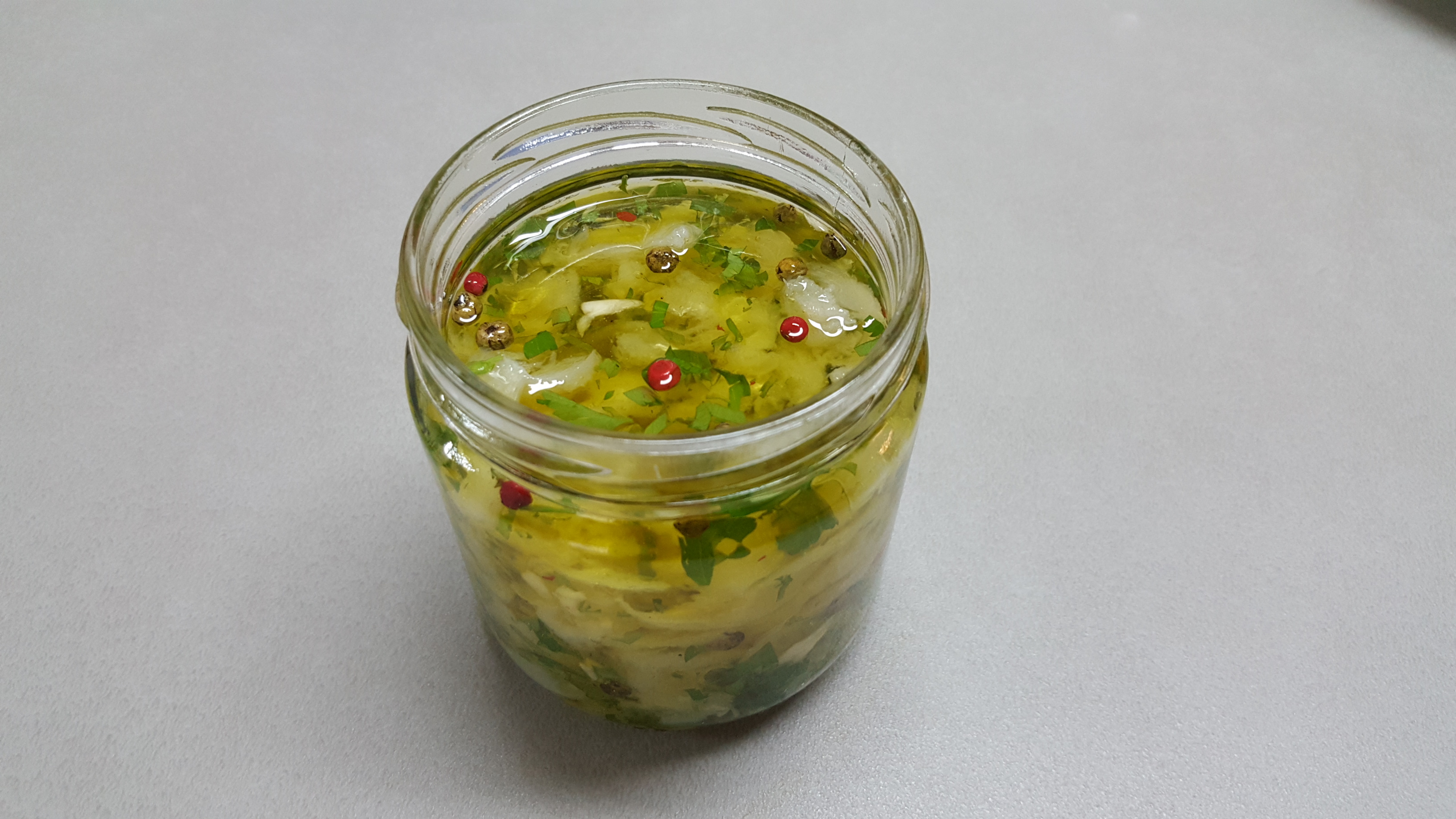 2- Sofreir 3 dientes de ajo en láminas, junto al aceite de oliva (25 gr.) y las cayenas, 5 min. Varoma, vel. cuchara.
